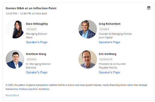 Playable Worlds President and Co-founder Eric Goldberg is moderating a panel on Games M&A at noon on November 13.