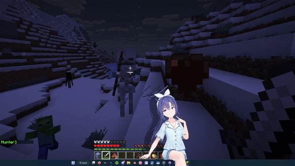 MateEngine reacts to Minecraft events in real time. The avatar comments on gameplay, warns about danger, and celebrates victories.
