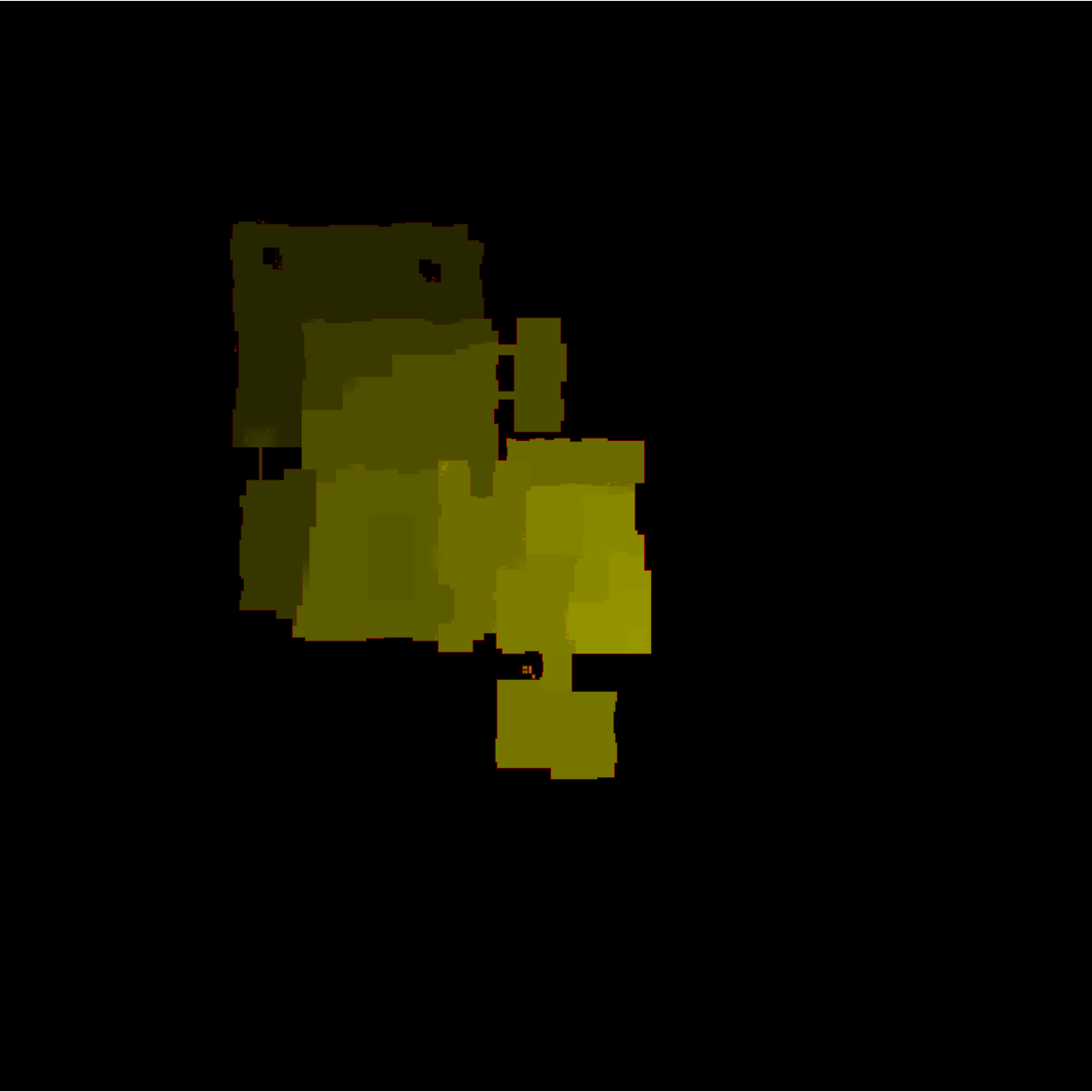 Here's the texture. You can recognize the little peninsula at the bottom of the texture and the game starts in the bottom right lightest corner. Both red and green channel mix to make this yellow color