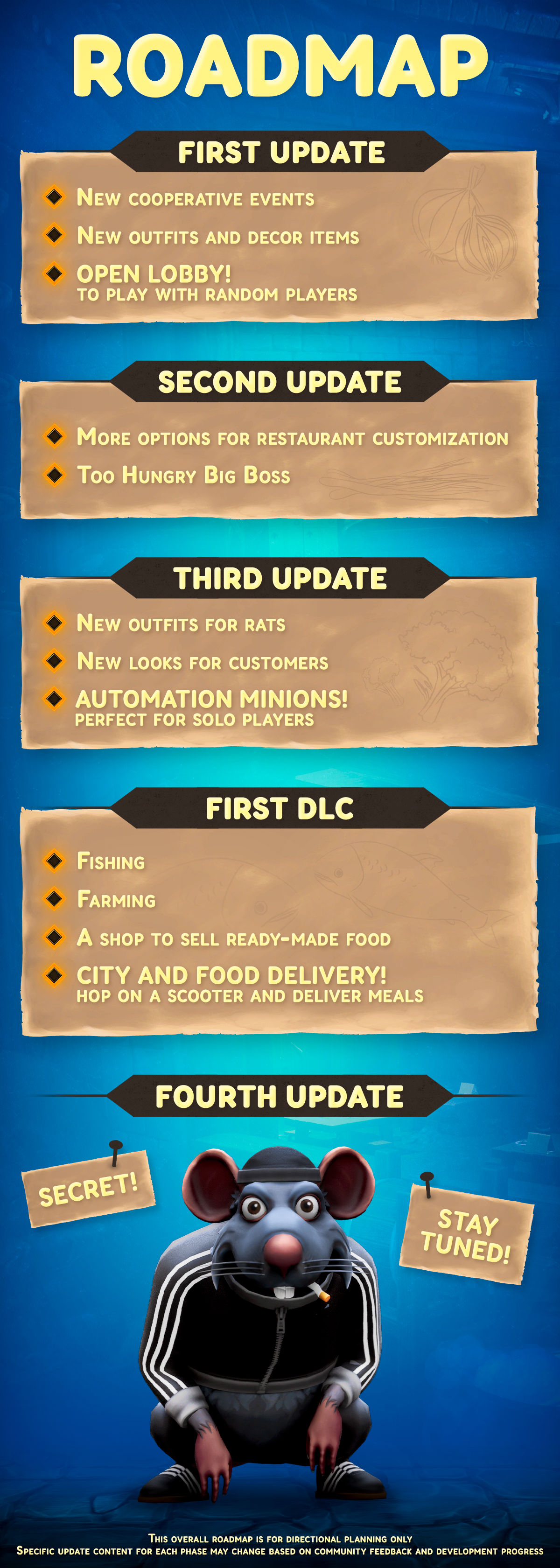 This is our full release (no Early Access), packed with customization, skill trees, tavern upgrades, baguette duels, and endless replayability. But we're not stopping there. We've got your backs with ongoing free updates and exciting DLCs to keep the kitchen heating up post-launch.