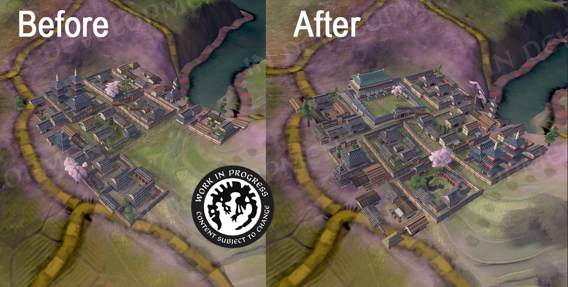 Our environment team has also been trying to add a bit more mood to the Chinese courtroom. Based on community feedback, the team has added more candles and carpets, pillars and drapes. The imperial tent has also been updated.