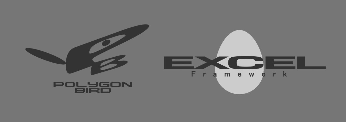 Logos for POLYGON BIRD Games and EXCEL Framework, the name given to our set of tools within GameMaker.
