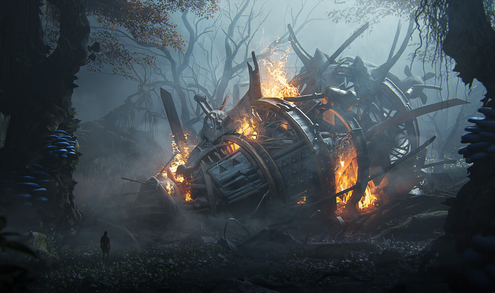 One of the most common machines is the Skywalker - airships built from wood, metal, and fragments of ancient machinery, designed to endure the harsh air above the Shroud. In peace, they trade and explore. In war, they throw solar bombs from above.