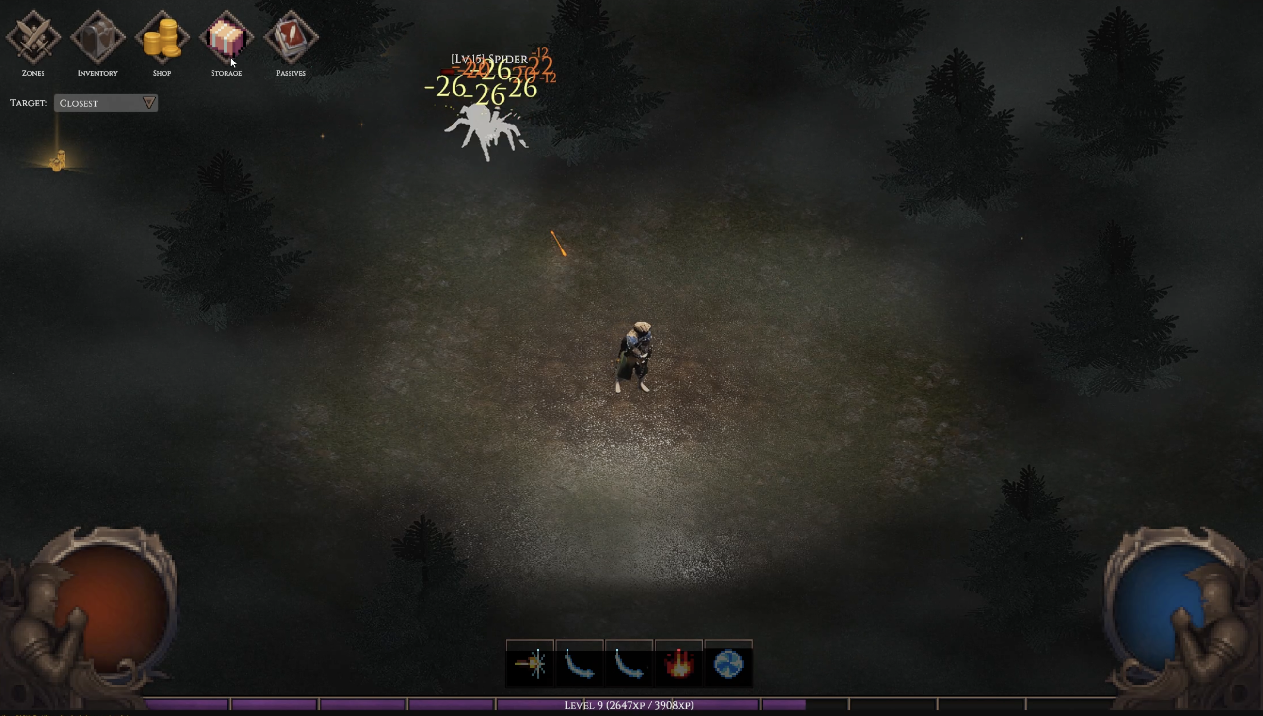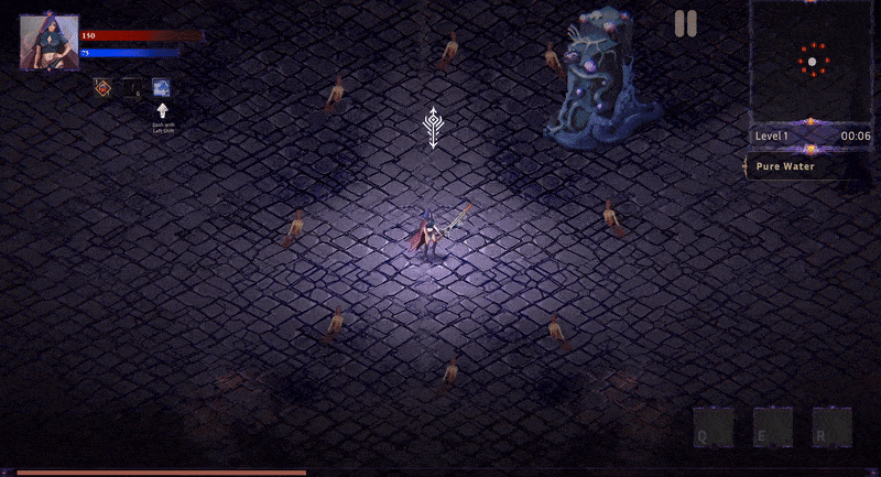 I started the project by making the character stand still while skills auto-cast and enemies spawn from the sides. It was intentionally simple. Add an inventory and loot and suddenly the screen looked like a coin tornado.