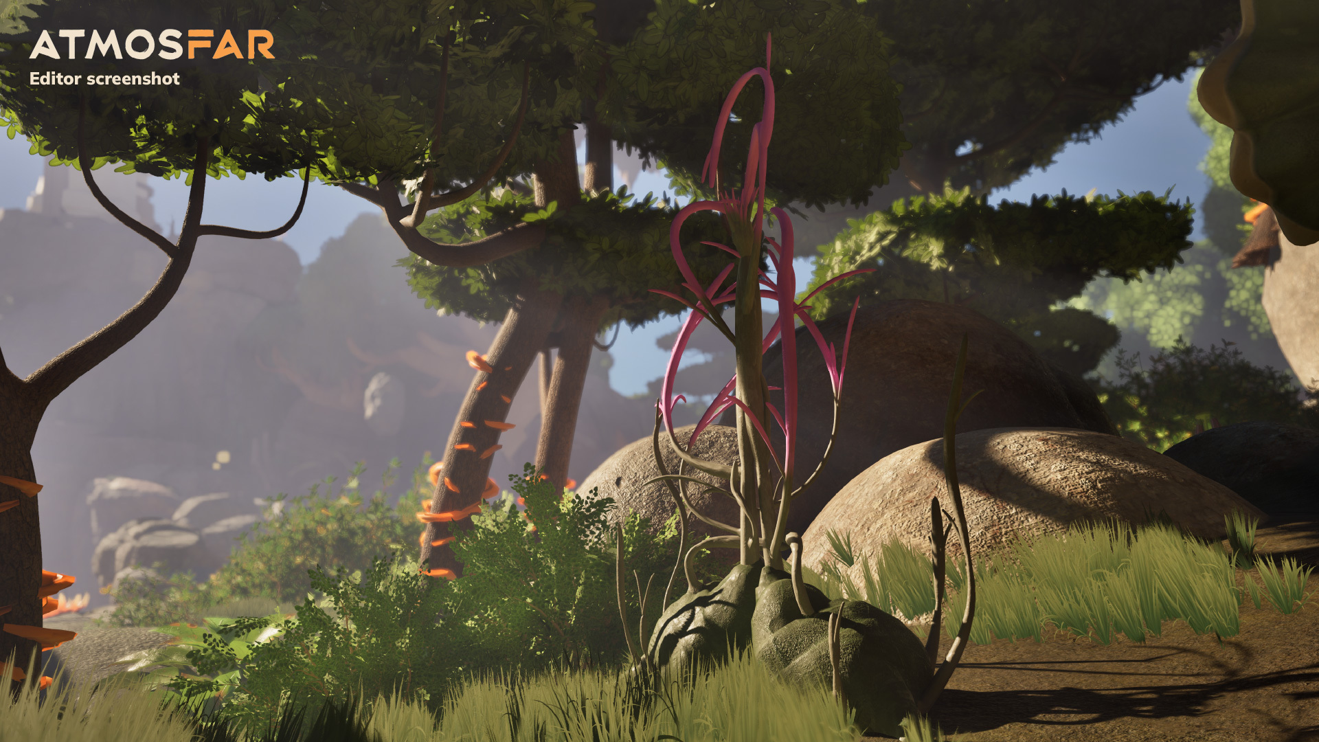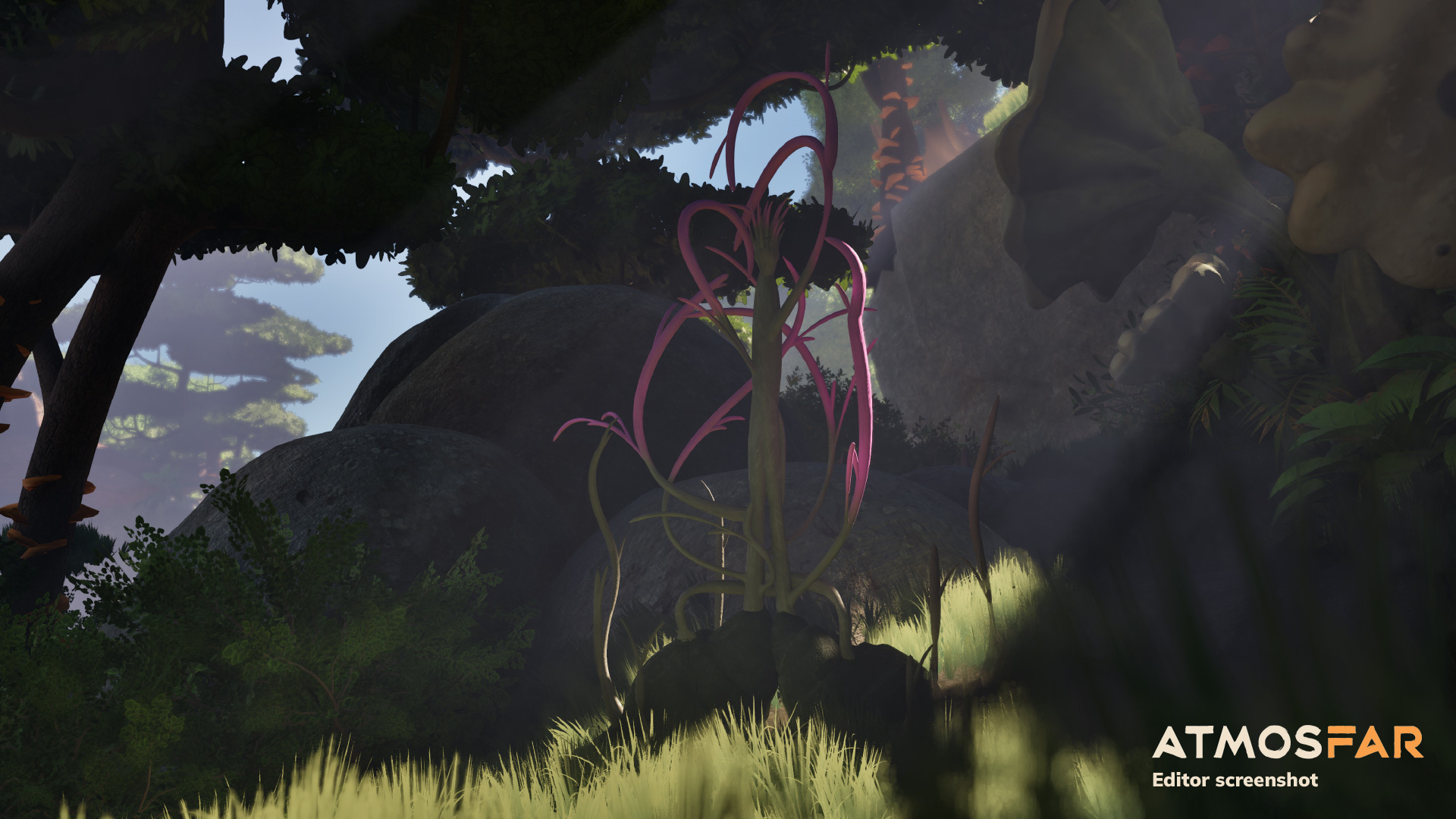 As explained in our previous dev blog, the plan and vision for Planet Tycos is determined, and what we’re focusing on now is to add detail to these bigger structures, to make it all feel like a complete and living world. We’ve continued with vegetation like before, but now with a focus on sub-biomes and interactive plants.