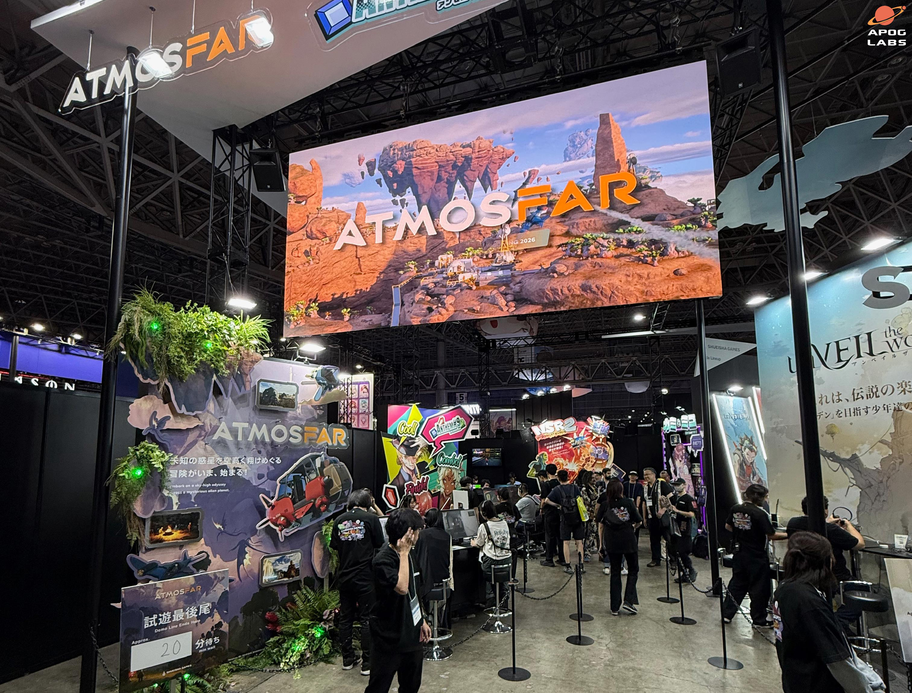 To end this dev blog with a bang, we’re very grateful to let you all know that we also went to Tokyo Games Show! Even though we’ve showcased ATMOSFAR twice (!), seeing new people try it out is still as exciting and nerve-wracking as it was the first time. Seeing people react, adapt and overcome the challenges we’ve designed for them comes with a certain feeling. Warms a game developer’s heart! At TGS we got the opportunity to have a slightly bigger and more detailed booth than at previous events. Check it out below!
