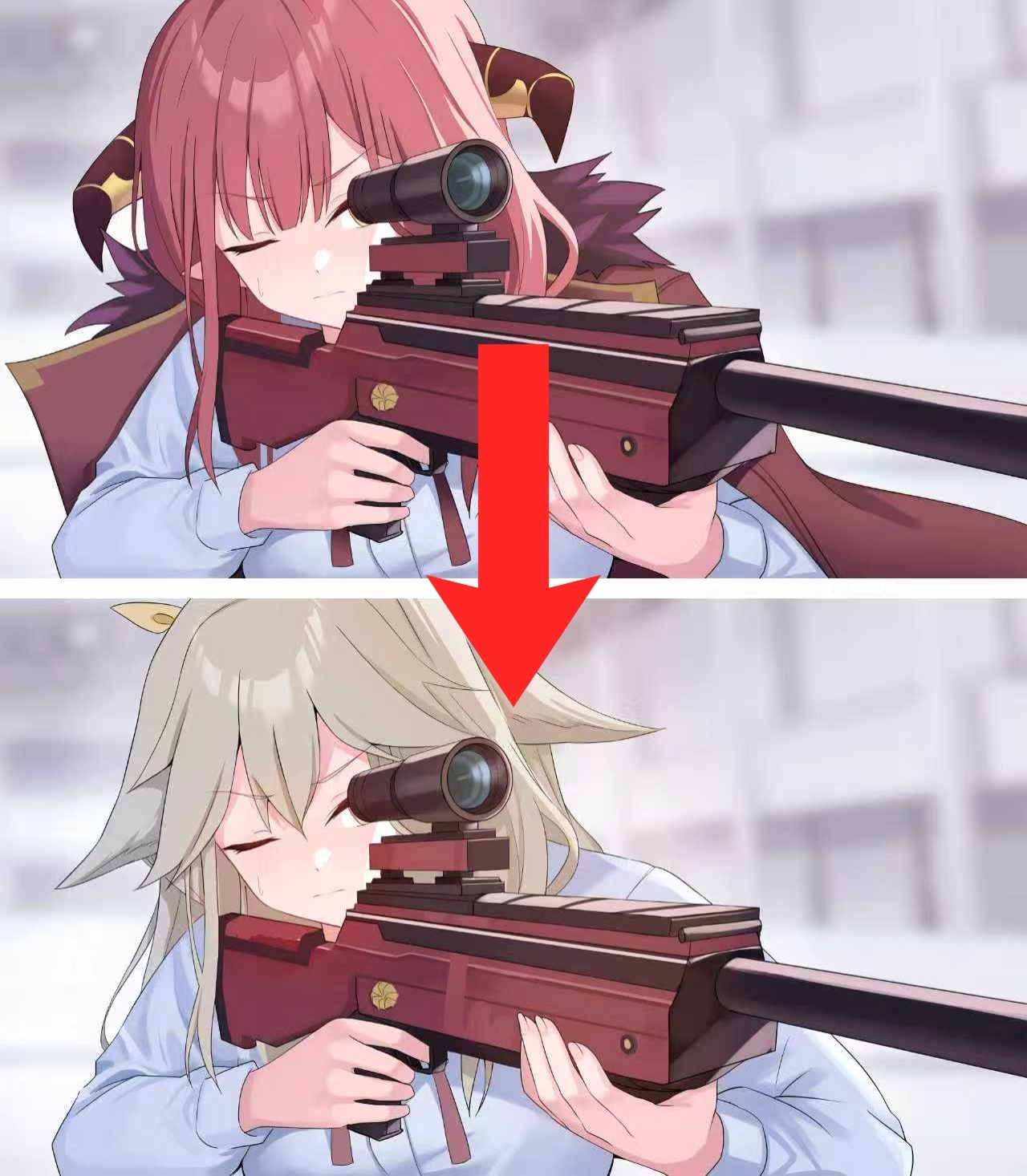 移除披风外套,保留内搭的白衬衫与黑裙,并且重绘了发型,保留角色个性同时规避版权风险。