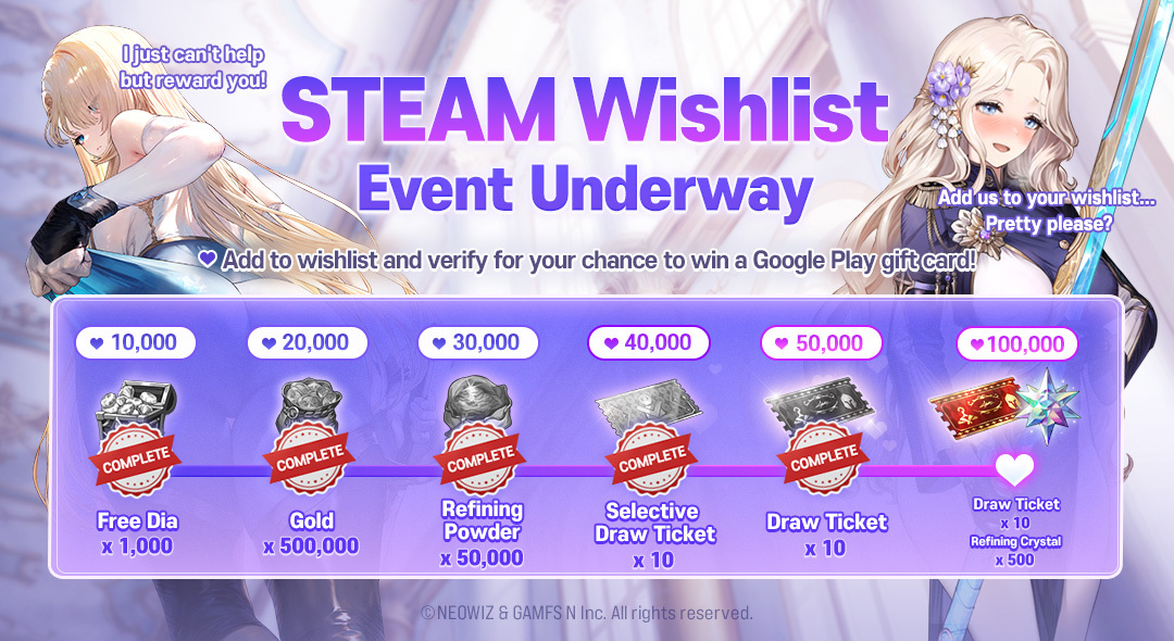 100K Wishlists: 10 Draw Tickets + 500 Refining Crystals (NEW!)