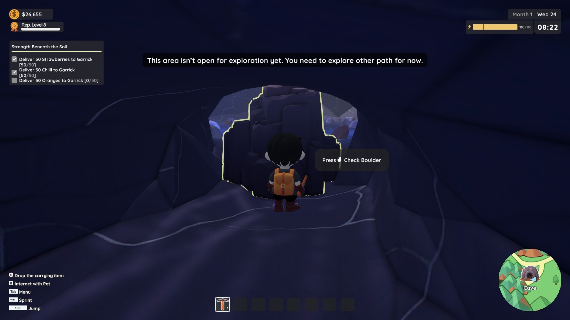 The notification for inaccessible areas inside the Cave and maximum upgrade on Blacksmith has been updated with clearer information. This allows players to understand better the condition of current version and which areas are currently unavailable in current the Early Access version.