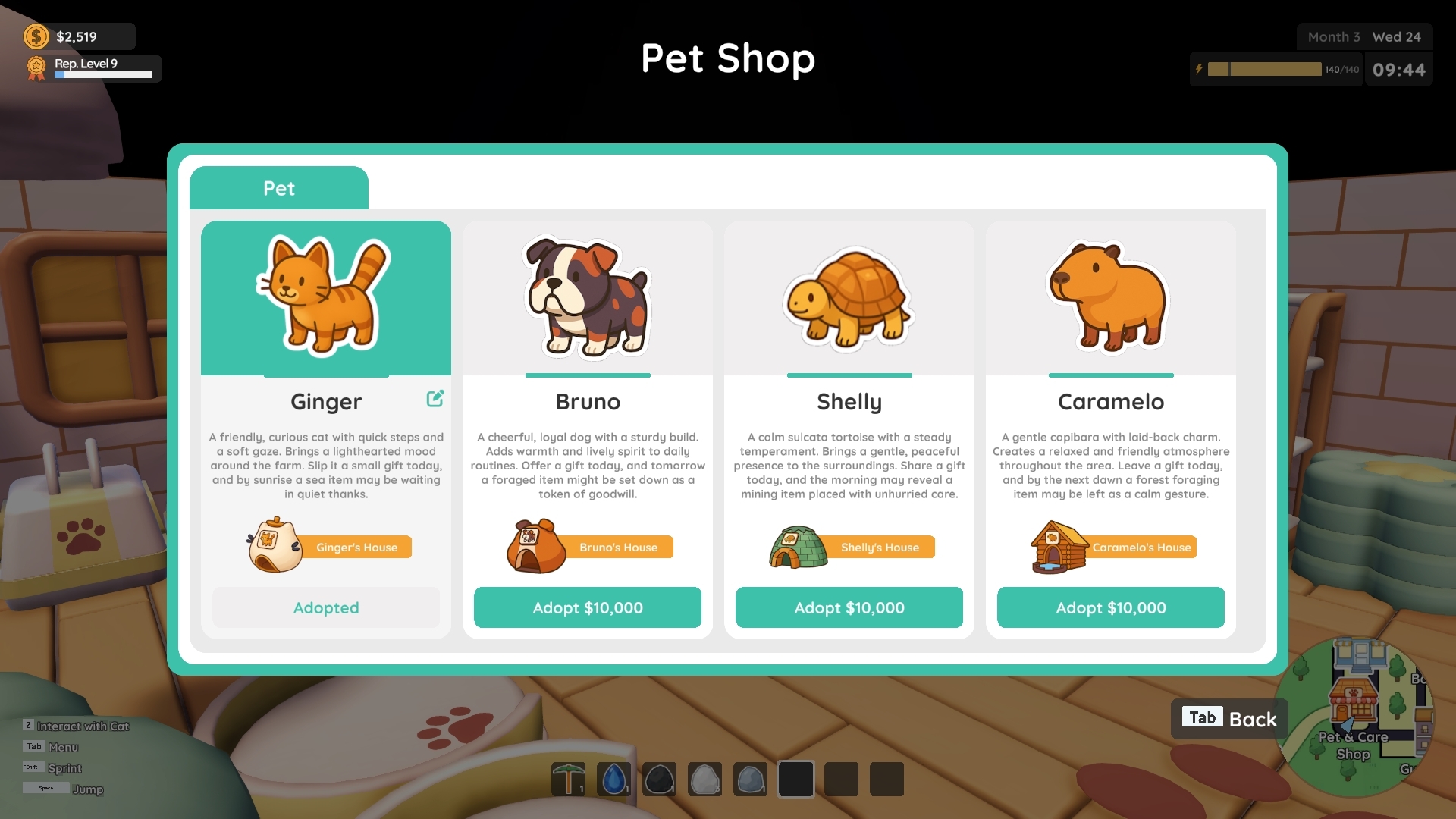 You can now choose from three new pets at the beginning of the game or adopt them later through the Pet & Care Shop.