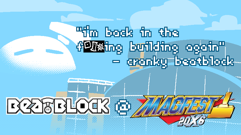 We're so back. Beatblock will be headed to MAGfest 2026 as part of its Indie Videogame Showcase (or MIVS for short!) We'll have the full song selection on display with the Cranktroller. If you're planning to attend or are in the area, swing by and give it a spin!