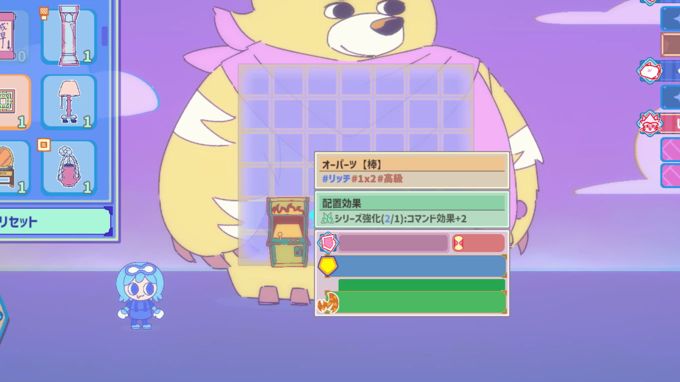 We plan to add a placement effect that grants an enhancement when furniture of the same Series is placed in the room.