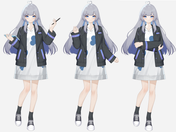 New character sprite "Azure", high school girl, three postures, 10-30+ versions for eyebrow/eye/mouth each. Not fully finished and we welcome feedbacks.