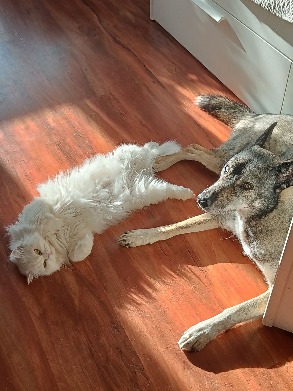 Meanwhile, look at our precious helpers! Their paws were directly involved in the game code… only to squash bugs, of course!