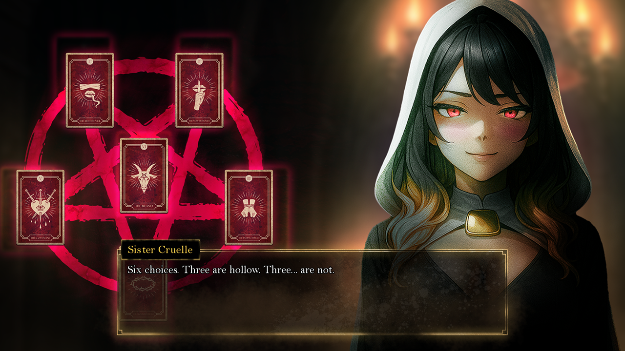 Cruelle's Ritual is now wired end-to-end. Six cards. One choice. A path that does not forgive.