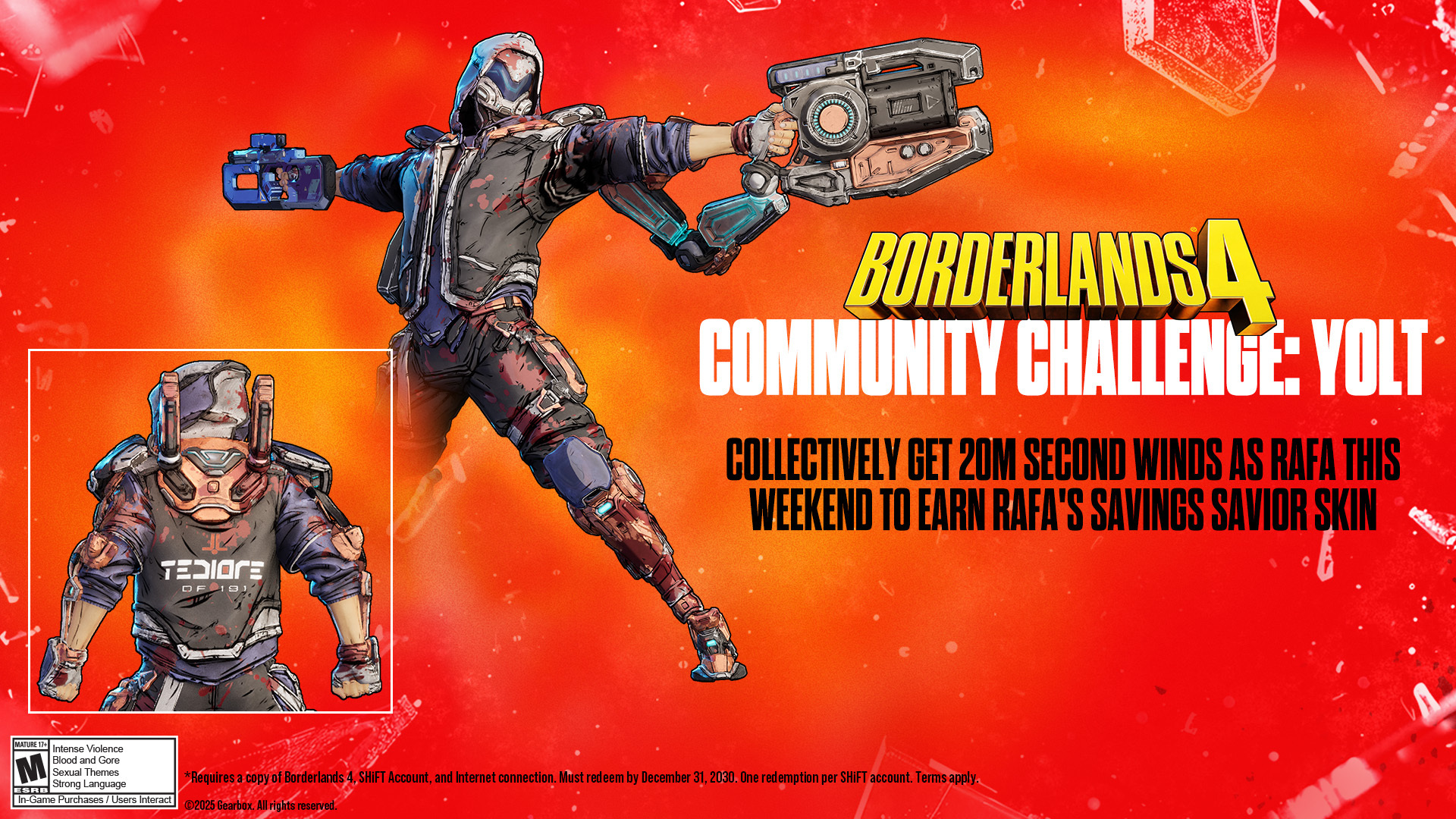 *Requires a copy of Borderlands 4, SHiFT Account, and Internet connection. Must redeem by December 31, 2030. One redemption per SHiFT Account. Terms apply