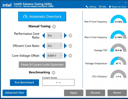 2. Lower the Performance Core Ratio by 2–3 steps. For example, you can set it from 55x to 53x.
