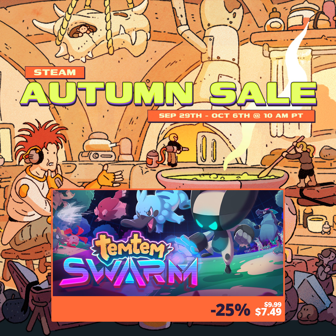 Temtem Swarm is 25% off as part of the Steam Autumn sale! Experience the chaotic world of our bullet-heaven survivor set in the colorful world of Temtem, with fresh content just launched!