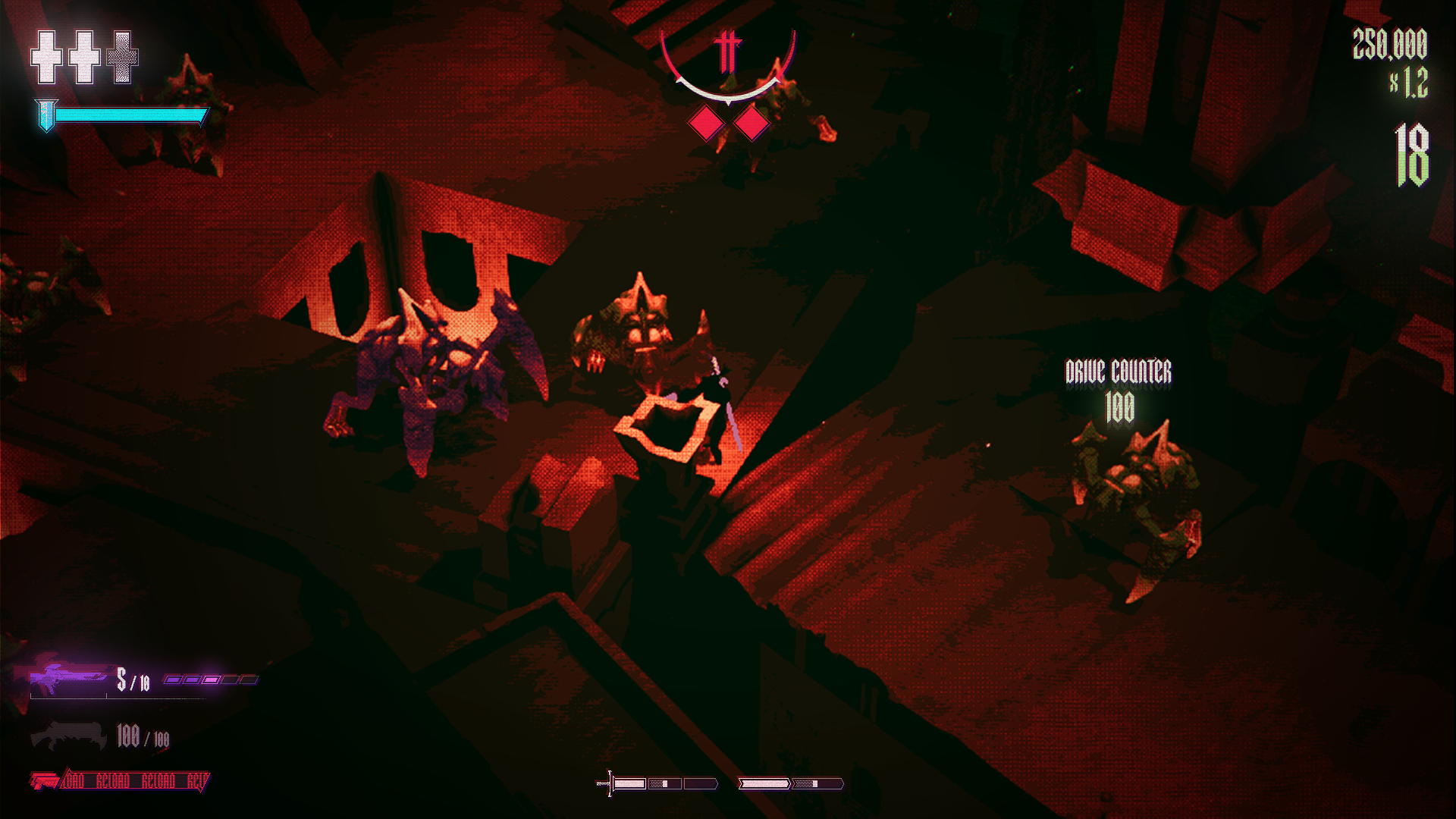 The second - and the moment we knew KILL KNIGHT had serious potential - was landing on the Active Trigger system. We’ve always loved Active Reloads, and felt not enough games have used them - but again, Freeze Frame Decisions put the pressure on us to iterate on the mechanic and give it multiple uses. At first glance it was ridiculous - all the Pistols & Swords need a unique mechanic just for this? But the prototype was undeniable, and the dev team was hooked - there was no backing out, so now you’ve got 3 ways to Reload.