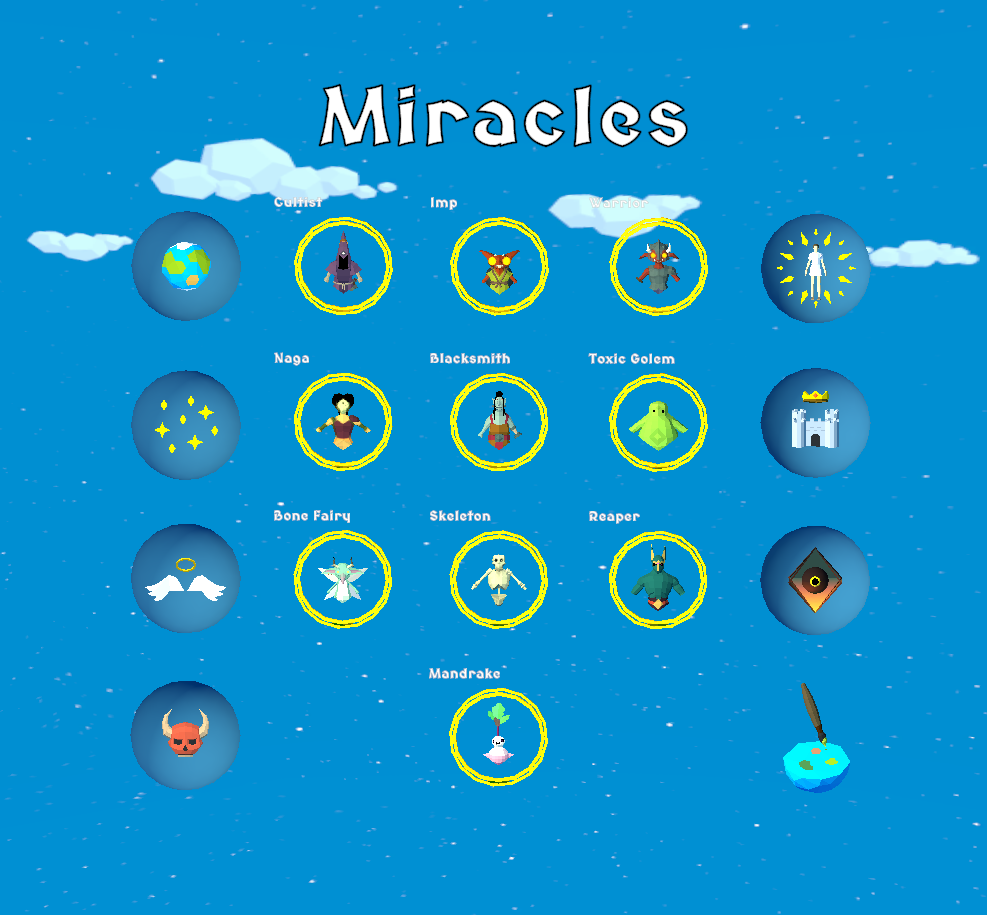 This update was also the perfect opportunity to completely revamp the Miracle Menu. Over the years, the old menu had become cluttered and made it difficult to add new miracles. The new design gives us more room to grow and should make it much easier and faster for you to select the miracle you want.