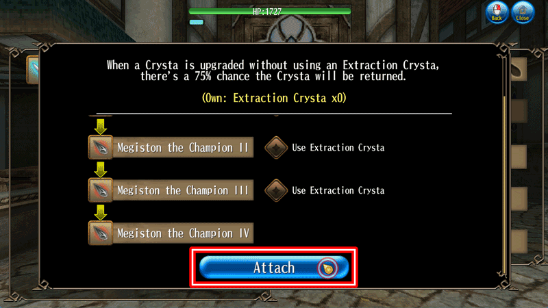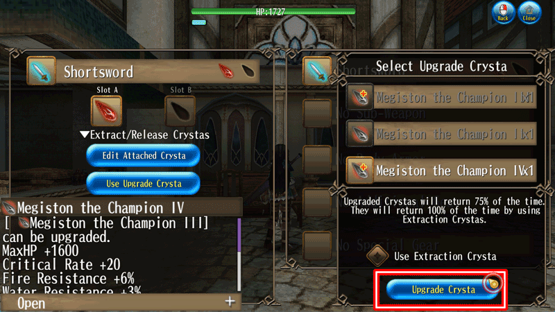 Choose the Crysta you want to equip eventually, then select "Upgrade Crysta" to equip all Crystas at once, including the one used as material in the upgrade process.