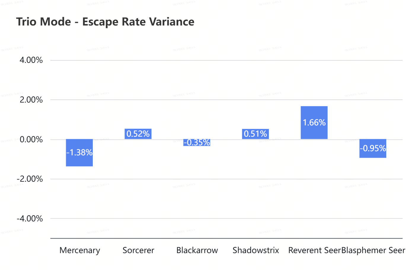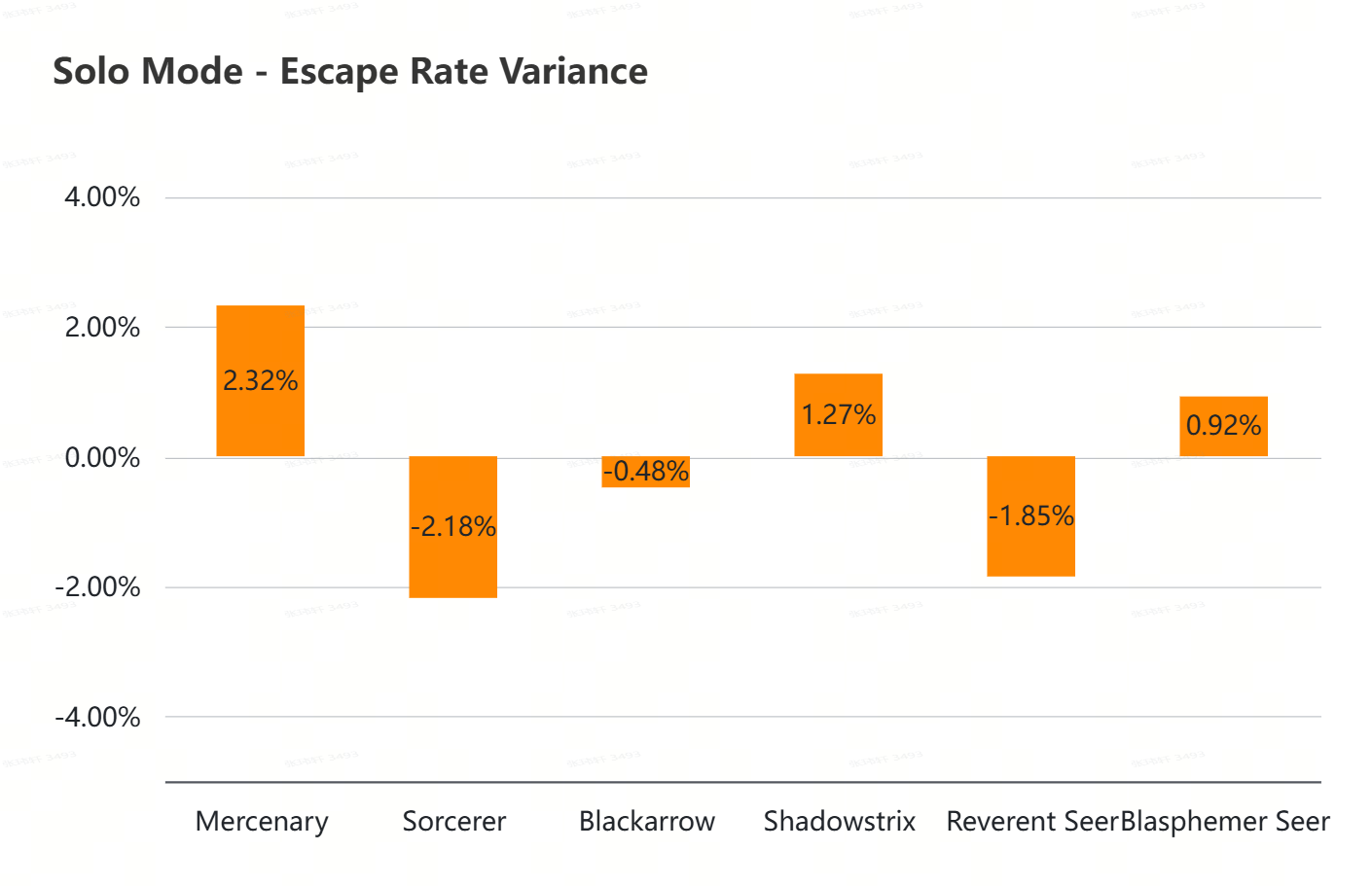 2. Balance has always been a major concern for everyone, and it's a huge challenge for us as well. While escape rate doesn't fully reflect overall class balance, it remains one of the key metrics for an extraction game like ours. Compared to the previous test, the variance in escape rates among classes in trio mode has become noticeably narrower. However, the improvement in solo mode has been limited, so we'll keep working on it.