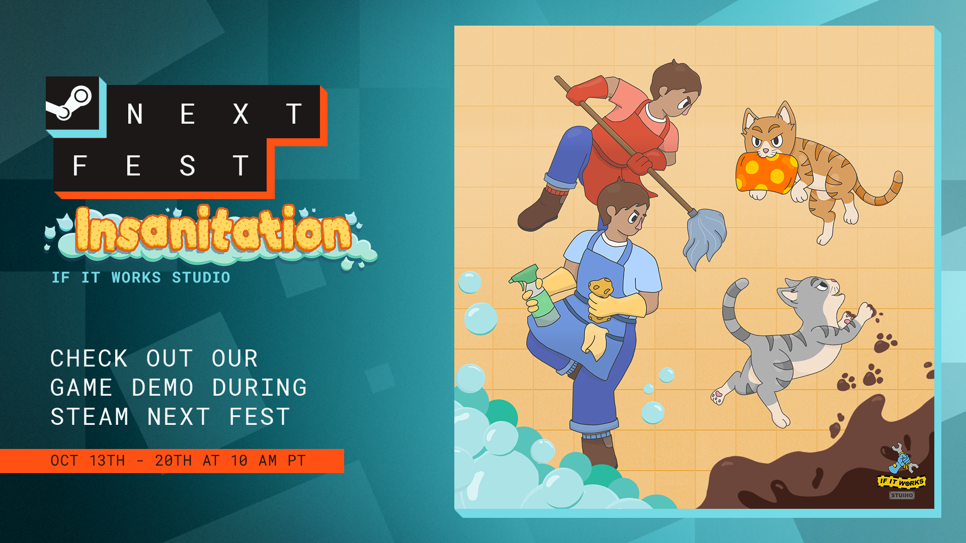 If you find any bugs or have feedback for us, please use the in-game buttons to bring you to those pages. Feel free to share our game on social media using the hashtag #Insanitation to have a chance to be featured. We will also be around on Discord the week of Steam Next Fest. As always, thank you for playing our game. We hope you have a ton of fun finally getting your hands on the Insanitation demo!