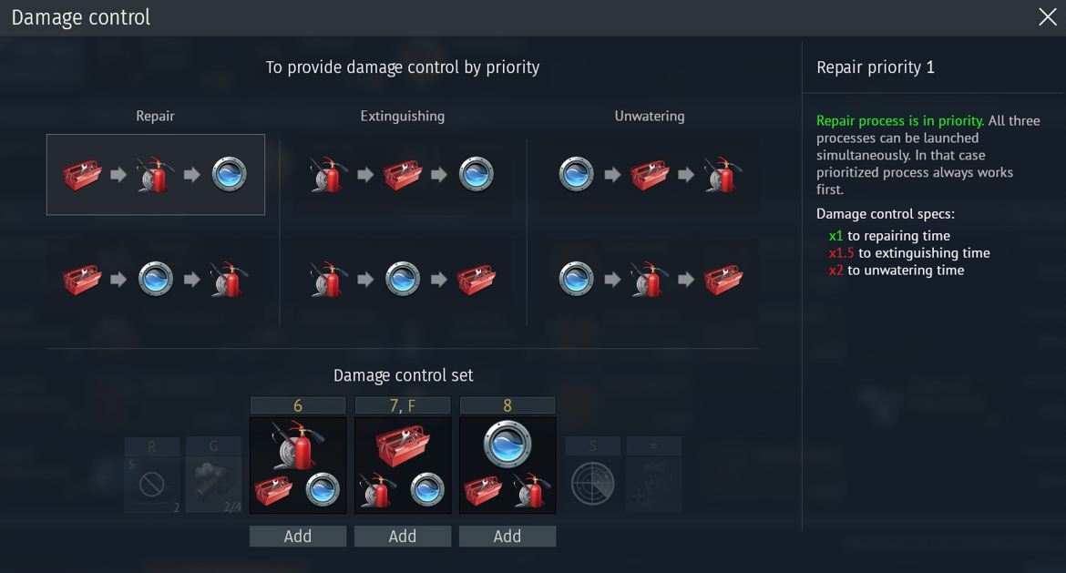 Any of the three types of damage control options operate at full speed if only one is running. In addition, you no longer need to press buttons to begin the process, as it starts automatically as soon as the ship takes damage. You can switch between three presets, changing the priority process based on the tactical situation you find yourself in.