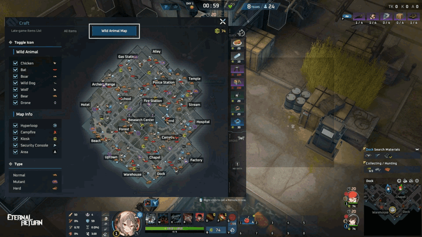 • You can enable which objectives you want to see like Chickens, Bats, Wild Dogs, Boars, Bears, Drones, etc.