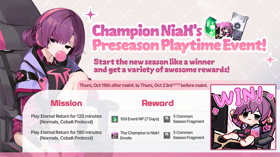 ▶▶ Champion NiaH's Preseason Playtime Event: \[See More]