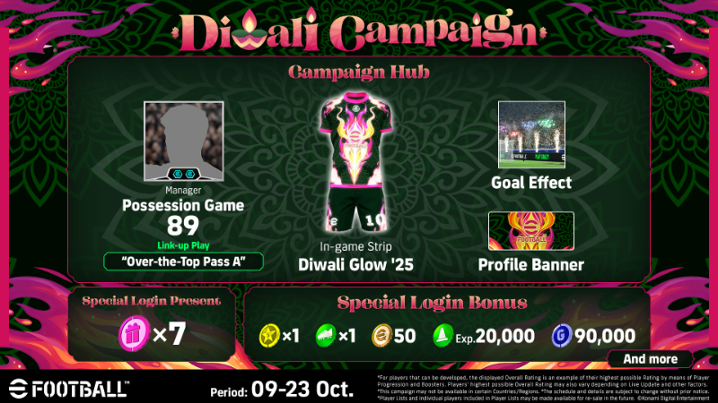 Take part in eligible Events and eFootball™ League, and aim to complete all Objectives!