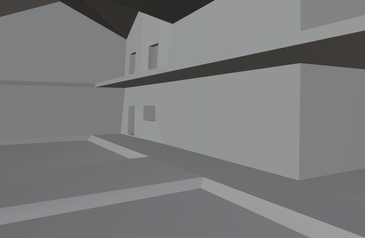 (These scenes are quite barren as its only the base world mesh - things like railings, windows, doors, furnitures etc. etc. are added in Unity, because they are standardized props, which are all breakable.)