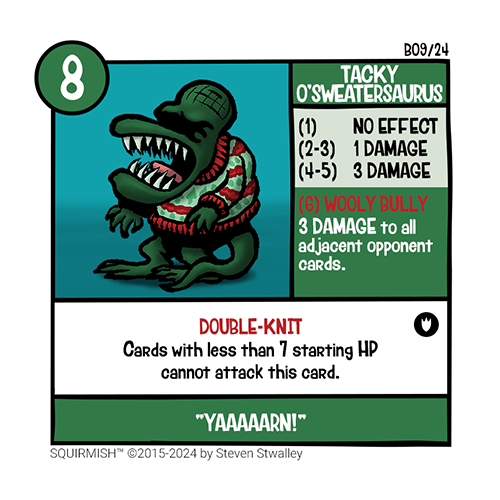 Pictured above: Tacky O'Sweatersaurus, one of the toughest cards in any deck (in spite of his questionable fashion sense), is included in this booster set.