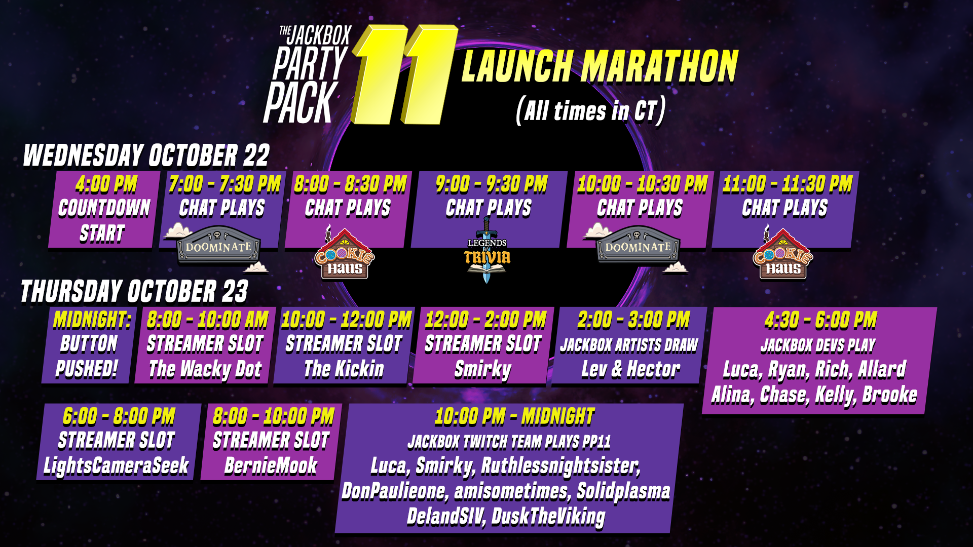 It’s two days of nonstop fun, art, and behind-the-scenes chaos as we count down to (and celebrate!) the launch of The Jackbox Party Pack 11.