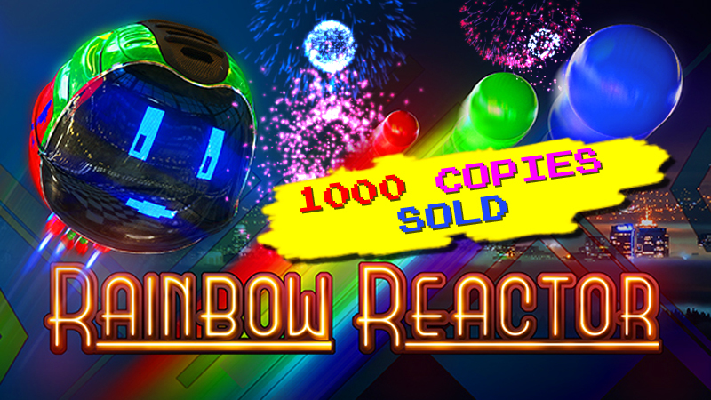 this is really good timing – on December 31st of 2019, we reached the magic milestone of having sold a 1000 copies of Rainbow Reactor! While this is a nice, round number, it's not really THAT much, but as a small team without a publisher, we're still quite happy about this achievement ːlunar2019smilingpigː