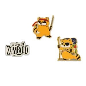 Display your love for Project Zomboid and Spiffo in shiny trinket form! The Spiffo pins are outlined in gold, while the silver Project Zomboid logo glows in the dark.