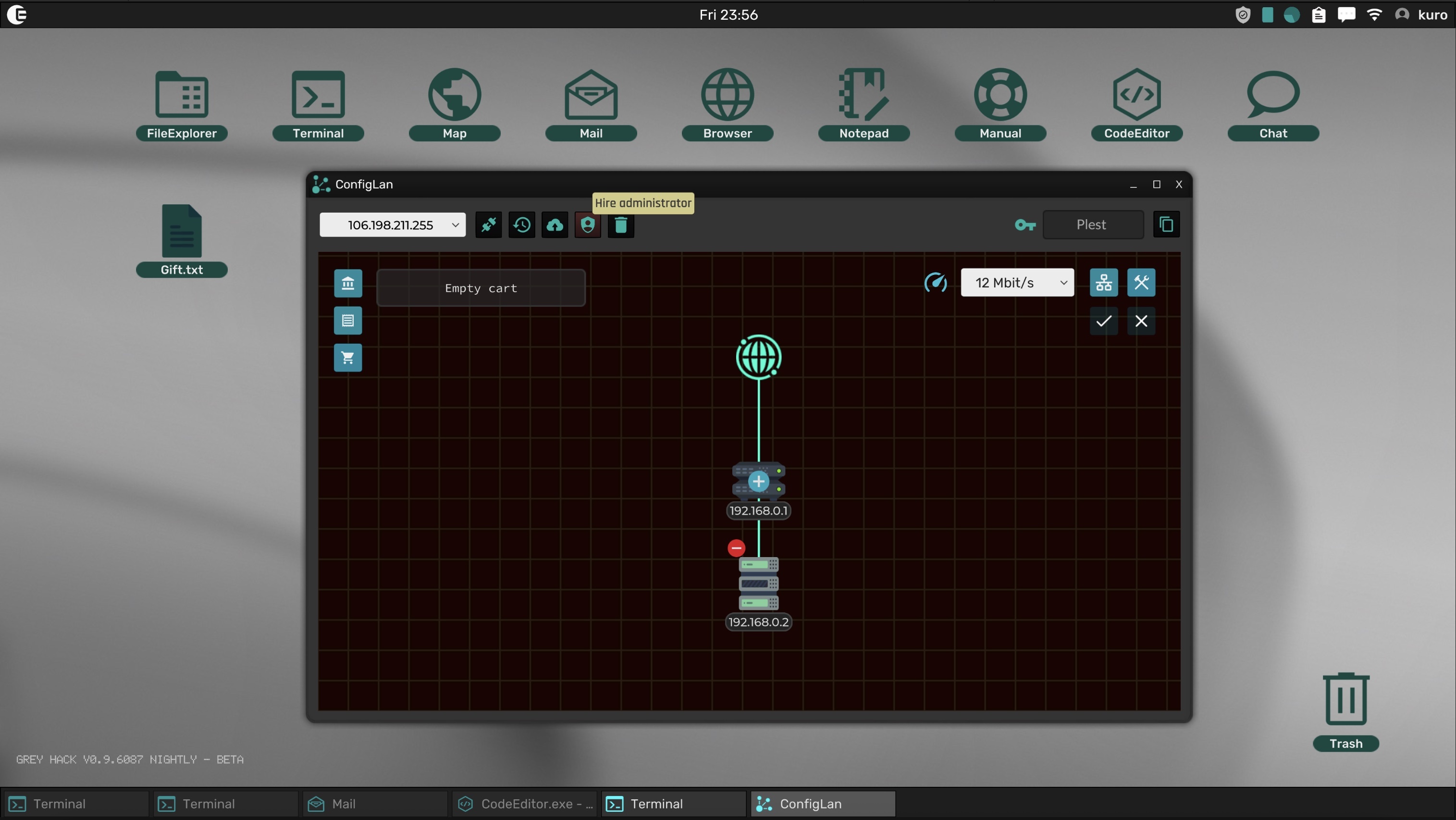 It is now possible to hire Superadmins for rentals via ConfigLan.exe. Like in NPC networks, superadmins intercept overflow attacks by forcing guest permissions and also protect networks from DDoS attacks. Unlike NPC network Superadmins, they do not initiate passive or active traces.