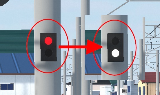 -出発信号機近くにある移動禁止合図が赤から白に変わったらすべての連結手順が完了です。