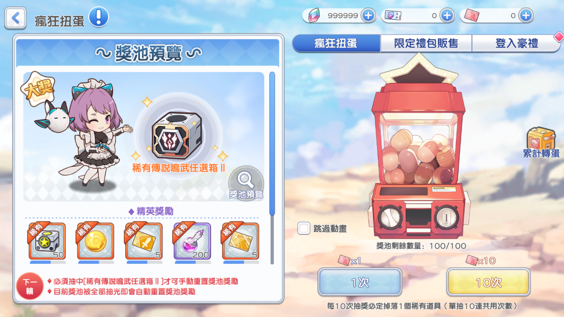 5、扭蛋券道具在活動結束後不會回收,下期活動開啟時還能繼續使用哦。