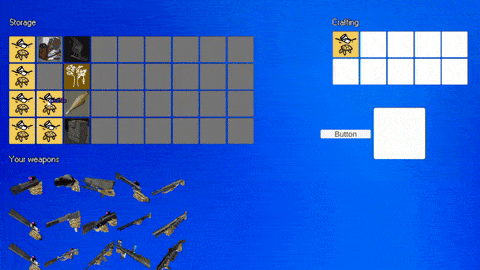 Crafting works similarly to minecraft, crafting from Item slots and certain materials, some special weapons will only be able to be crafted from special parts