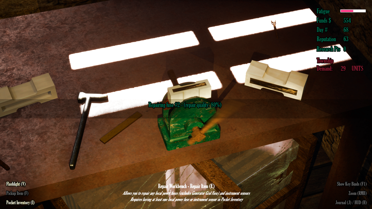 • The cleaning process for the Generator Air Filter and the Power Pole Insulators has been improved! Now, when you clean these items, visible airborne 'dirt' will fill the immediate area around the item. Once the item you are interacting with is mostly clean, the airborne dirt will cease. This gives you more of a visual indication of dirt levels for these items