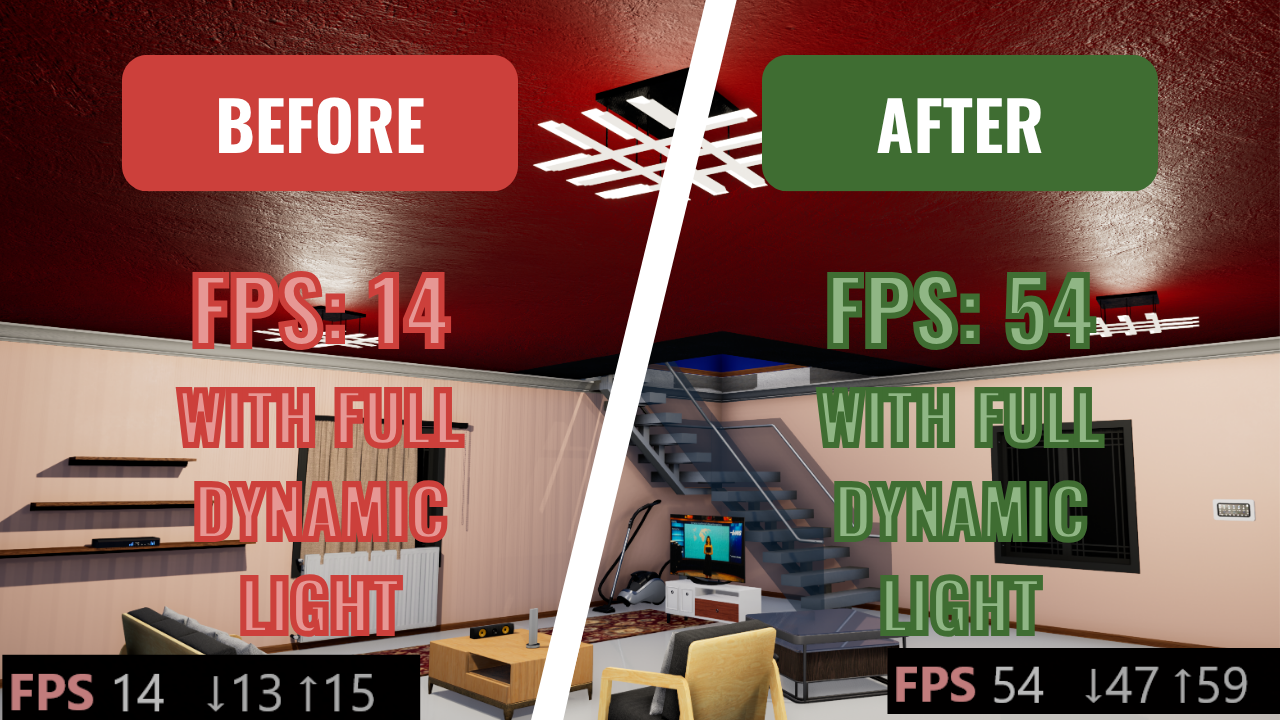 You can see the FPS difference regarding the lighting optimization improvement in the image below.