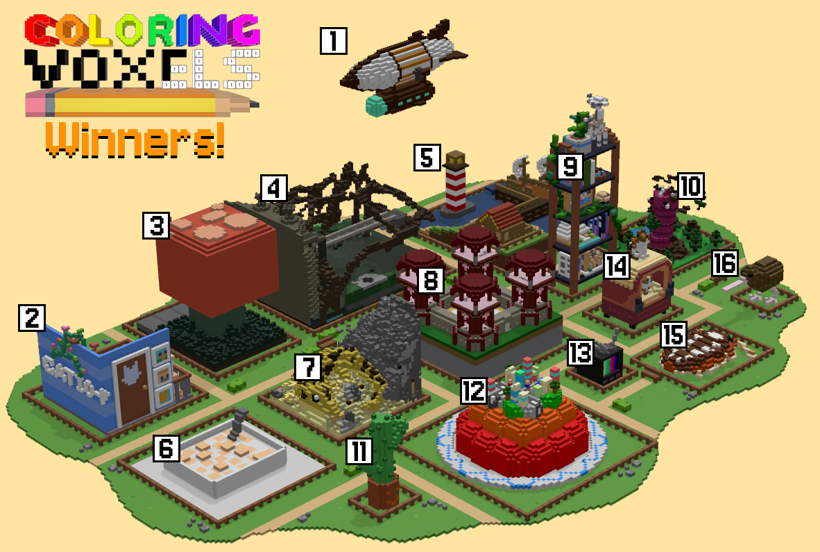 This community-made world will be coming soon to all players as a free update for you all to play! Thank you to everyone who submitted. The results are amazing. Make sure you express your interest about future community worlds if you want the chance to get your own art into Coloring Voxels and we'll be able to plan future, annual competitions!