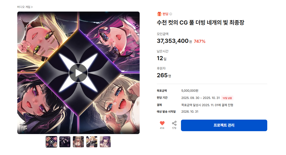 네개의 빛 최종장 텀블벅도 꾸준히 진행중입니다.