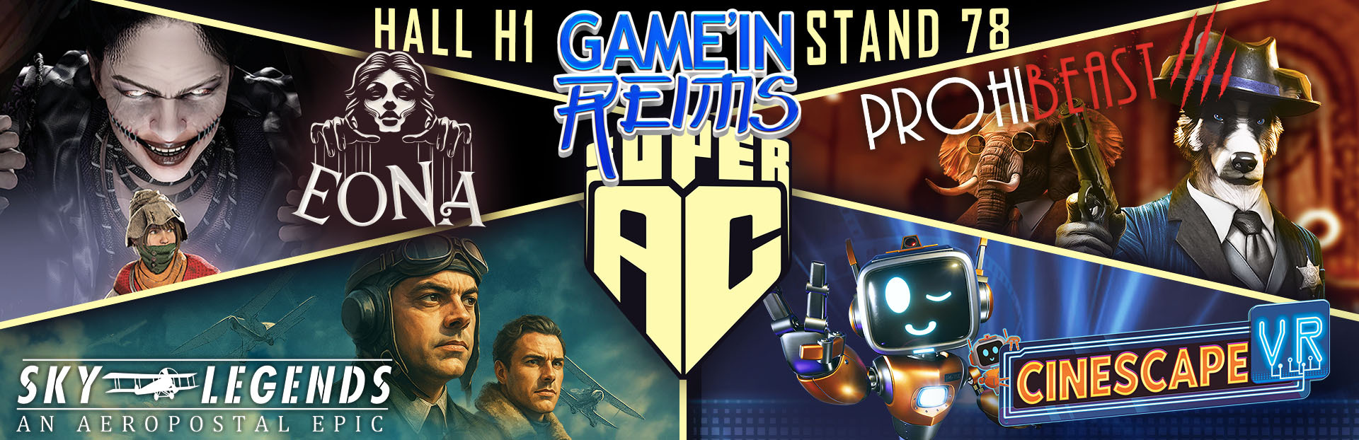 PROHIBEAST, EONA, CINESCAPE VR and SKY LEGENDS will be palyable at the Game'In Reims festival, on 22 and 23 of novembre, at the SUPER AC booth !