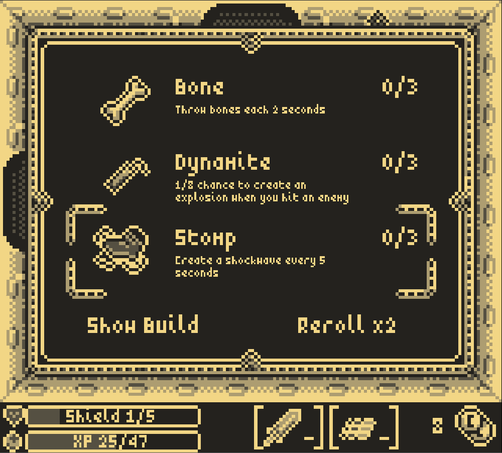 • bone, throws one bouncing bone (unlocked by using 5 sanctuaries)