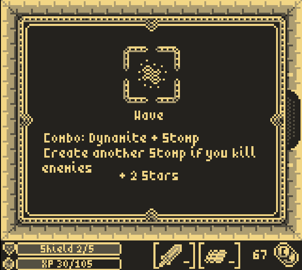 • dynamite, an explosion may occur when an enemy is hit (unlocked by leveling-up 50 times)