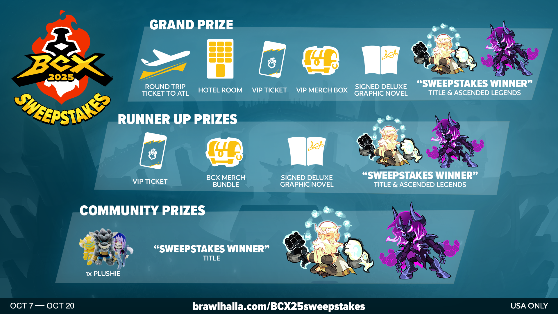 Read the Official Rules before entering into the BCX 2025 Sweepstakes. (https://www.Brawlhalla.com/BCX25sweepstakesrules)