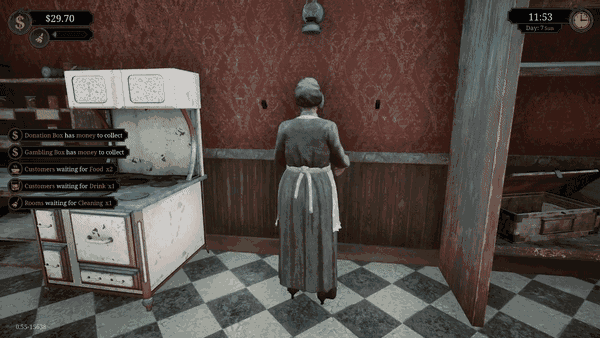 This time, a new member joins your saloon crew – the cook. Once you open your saloon, she’ll appear in the kitchen and wait for your instructions.