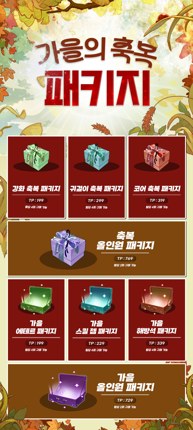 다음 기간 동안 가을의 축복 특판 패키지가 판매됩니다.